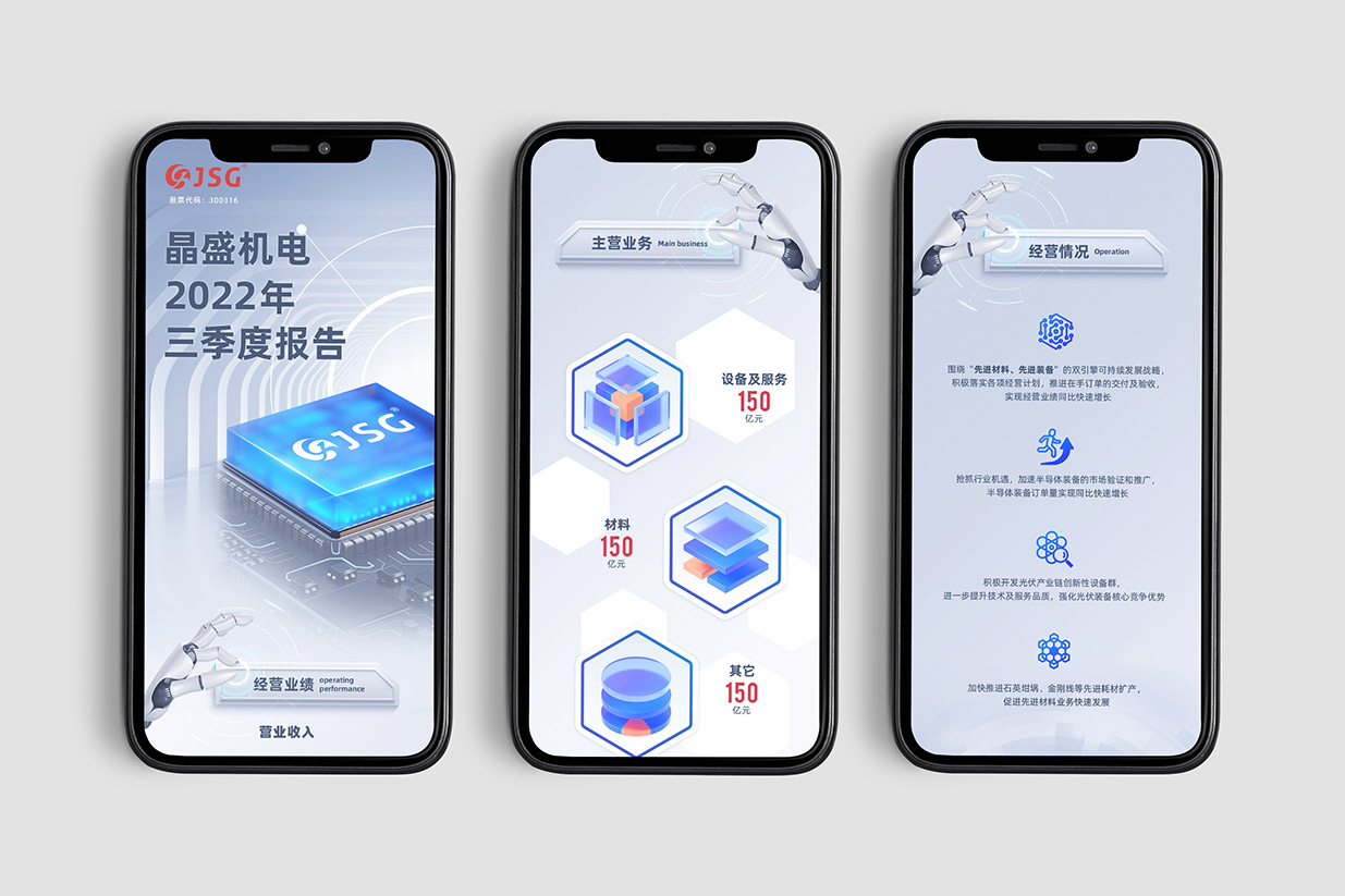 整個設計風格應簡潔明了,避免過多的文字和圖片堆砌,讓讀者能夠快速了解晶盛機電的基本情況和業(yè)績增長情況。