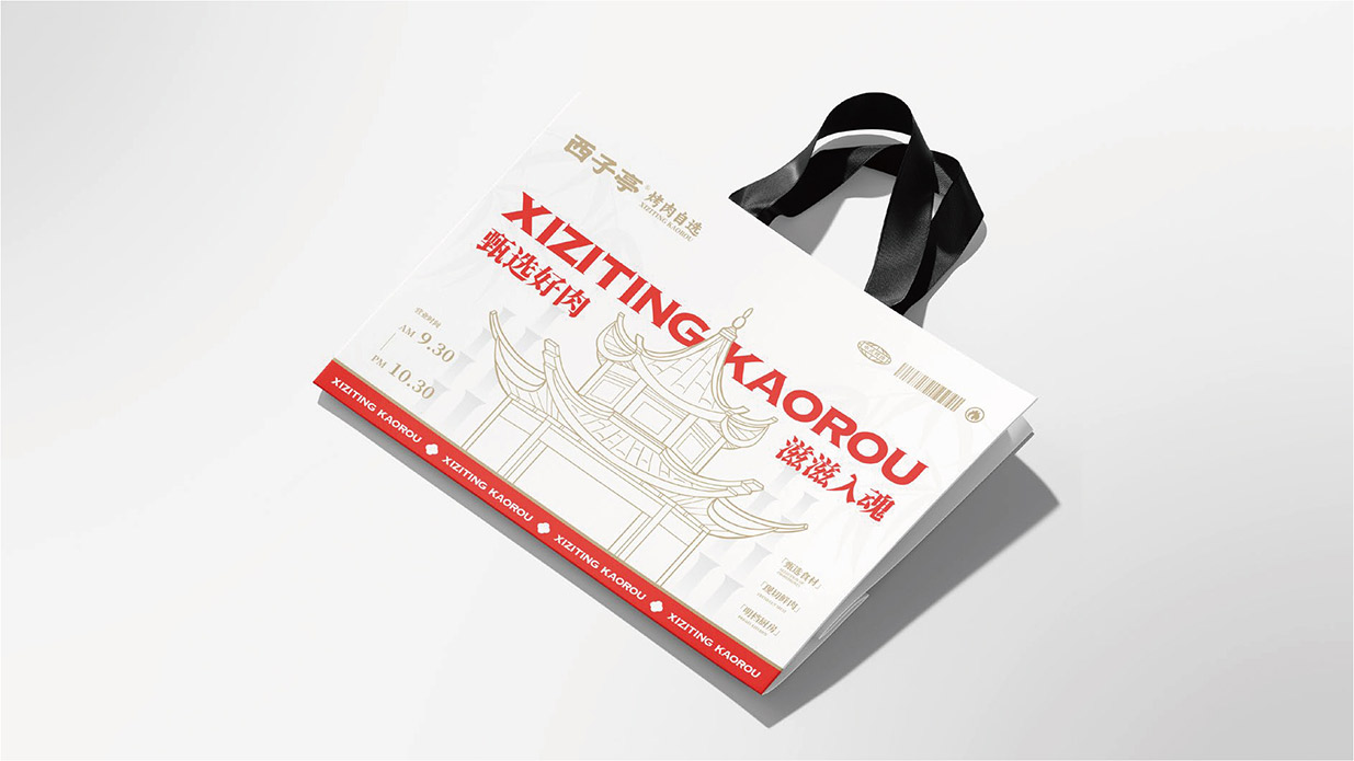 Introduction:西子亭炭火烤肉,秉承傳統(tǒng)炭火烤炙工藝,以老底子老味道為魂,讓美食回歸本真。品牌形象設(shè)計(jì)采用新中式風(fēng)格品牌運(yùn)用炭火紅與竹青,營造出溫馨、舒適的用餐氛圍。同時(shí),借助黑色的點(diǎn)綴,提升品牌的高貴與典雅。