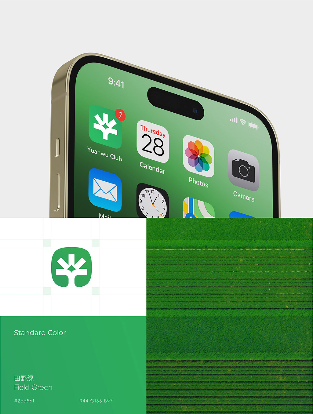 標(biāo)志由英文首字母“Y”“W”巧妙構(gòu)成,同時(shí)蘊(yùn)含「光」與「植物」的雙重意象。光線孕育生命,農(nóng)作物象征天然本源,幾何圖形簡(jiǎn)約而富有生機(jī),呼應(yīng)品牌對(duì)自然健康的地域珍品的追求。