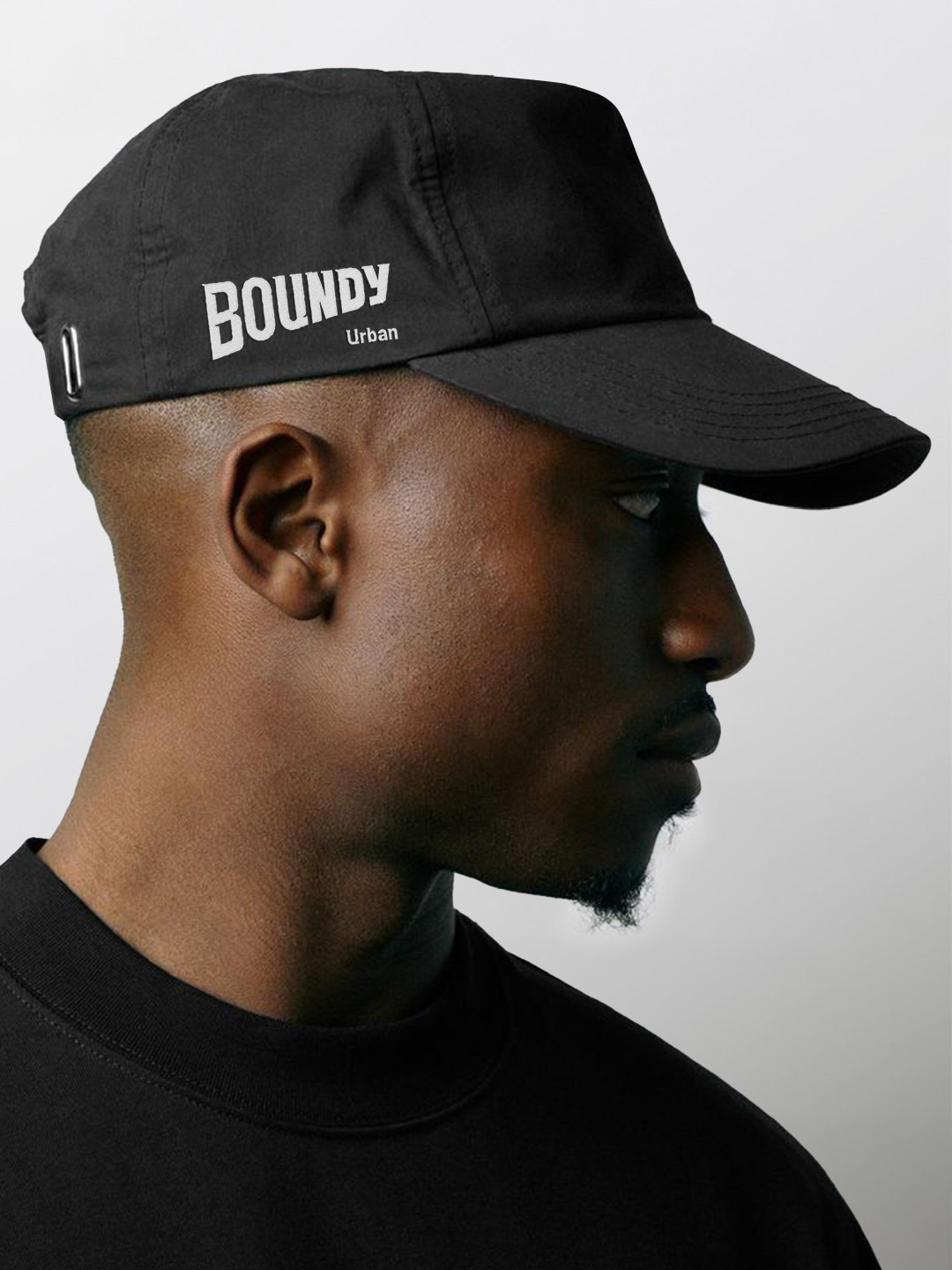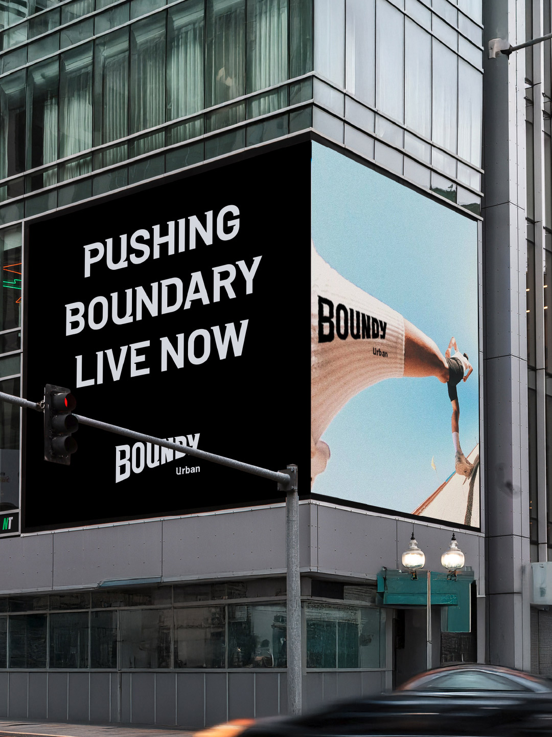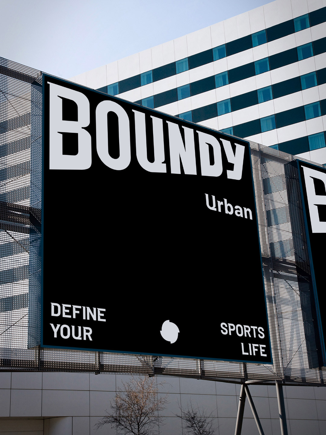 品牌標(biāo)志設(shè)計核心符號:以品牌名稱“BOUNDY”為主體,通過厚重字體與透視結(jié)構(gòu)強化視覺沖擊力。字體棱角分明,傾斜的透視造型體現(xiàn)動態(tài)感與力量延伸感。