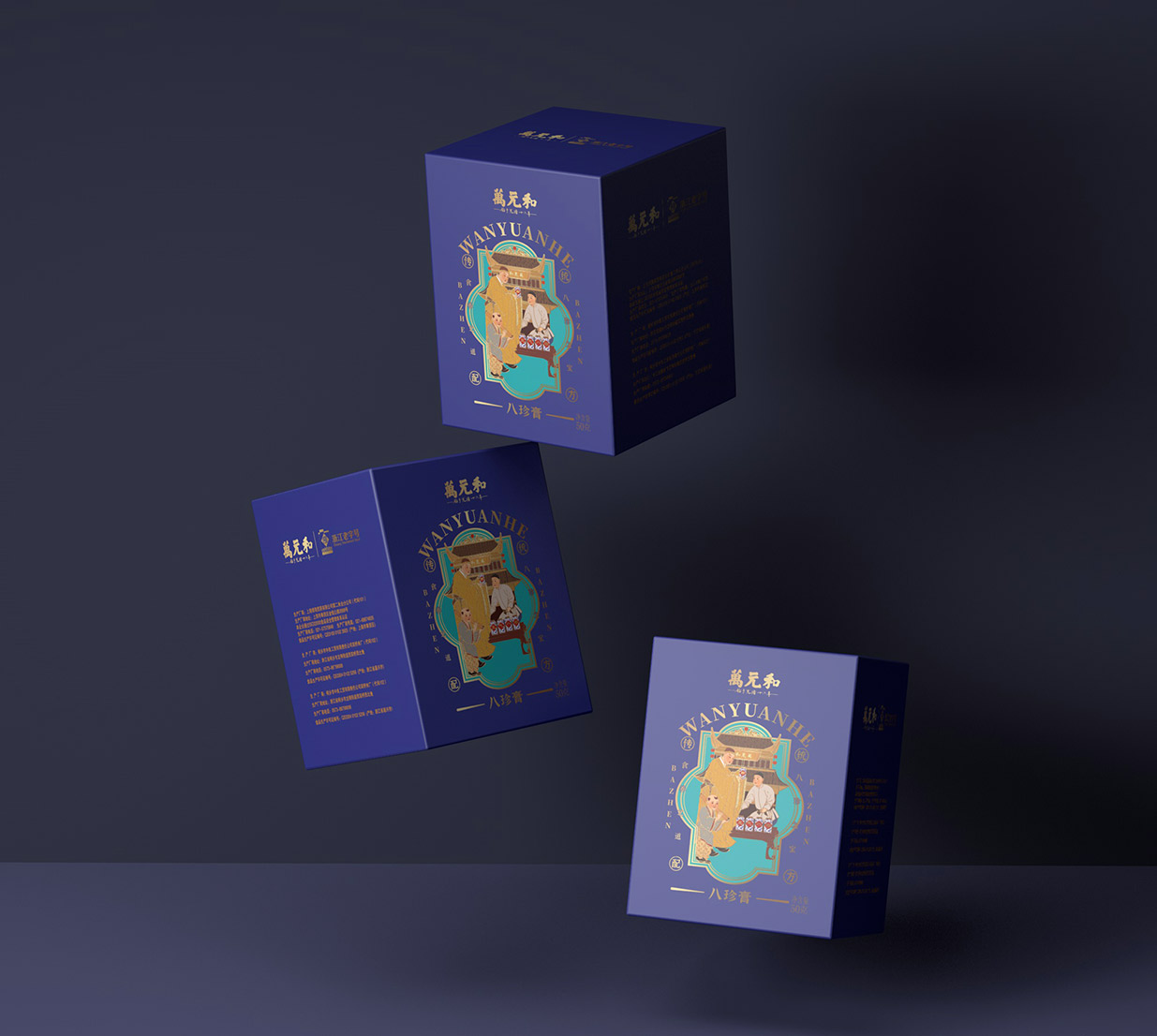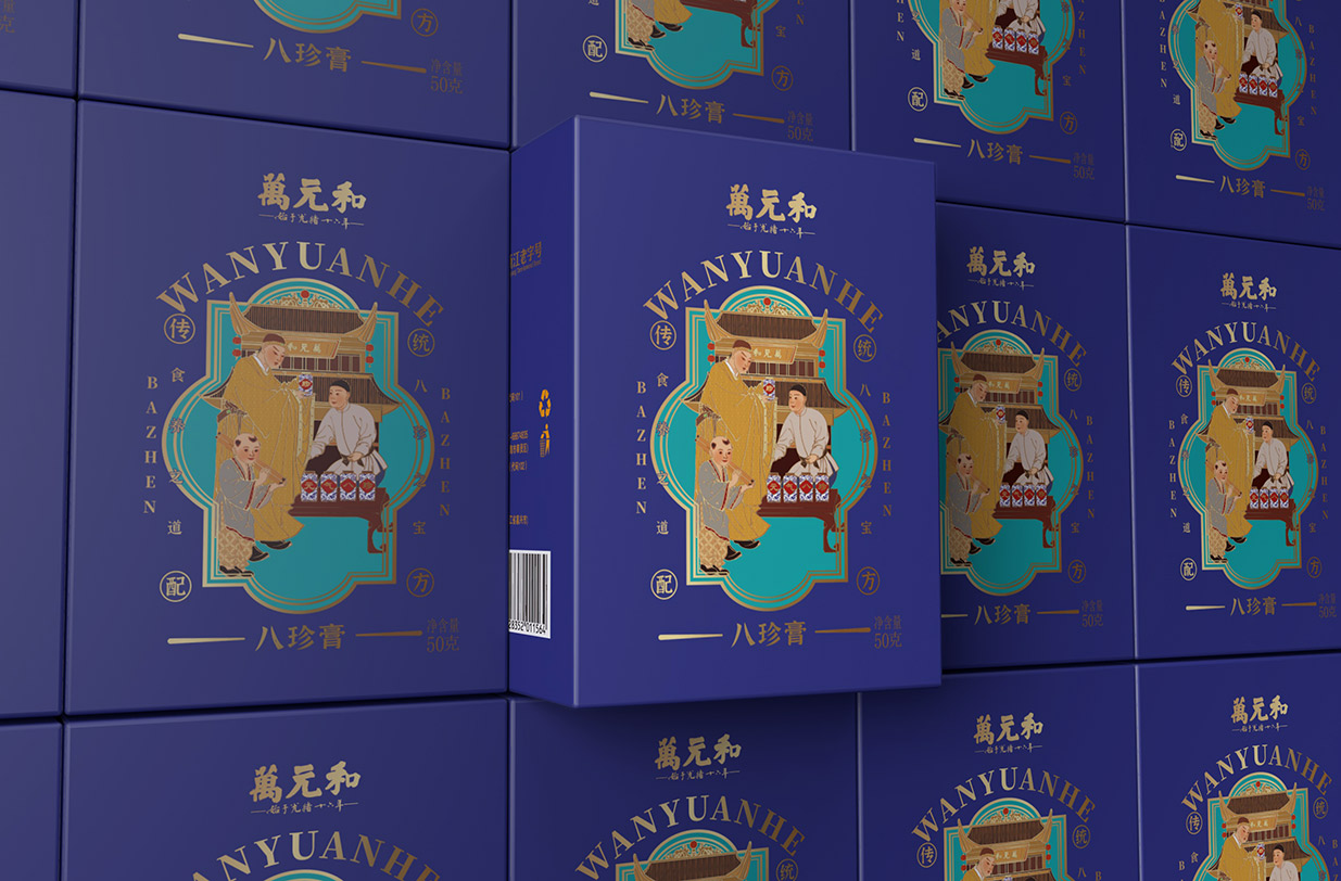 仕女與書生,是中國傳統(tǒng)文化中最為經(jīng)典的形象之一,代表著優(yōu)雅、智慧和堅韌。我們將這一形象融入包裝設(shè)計中,寓意著萬元和八珍膏不僅能夠調(diào)理身體,更能滋養(yǎng)心靈,提升生活品質(zhì)。