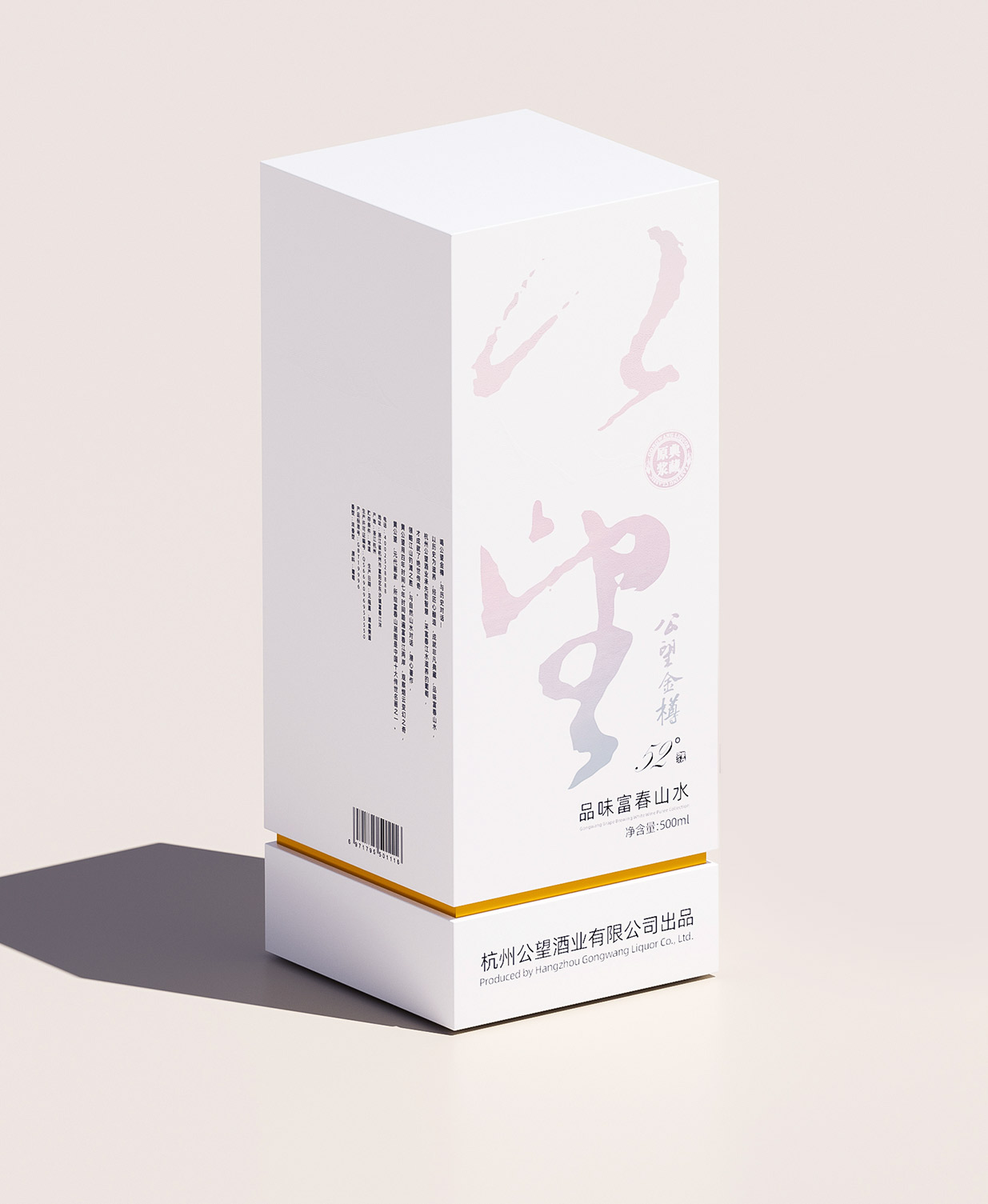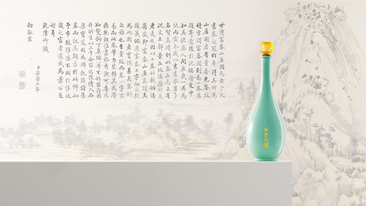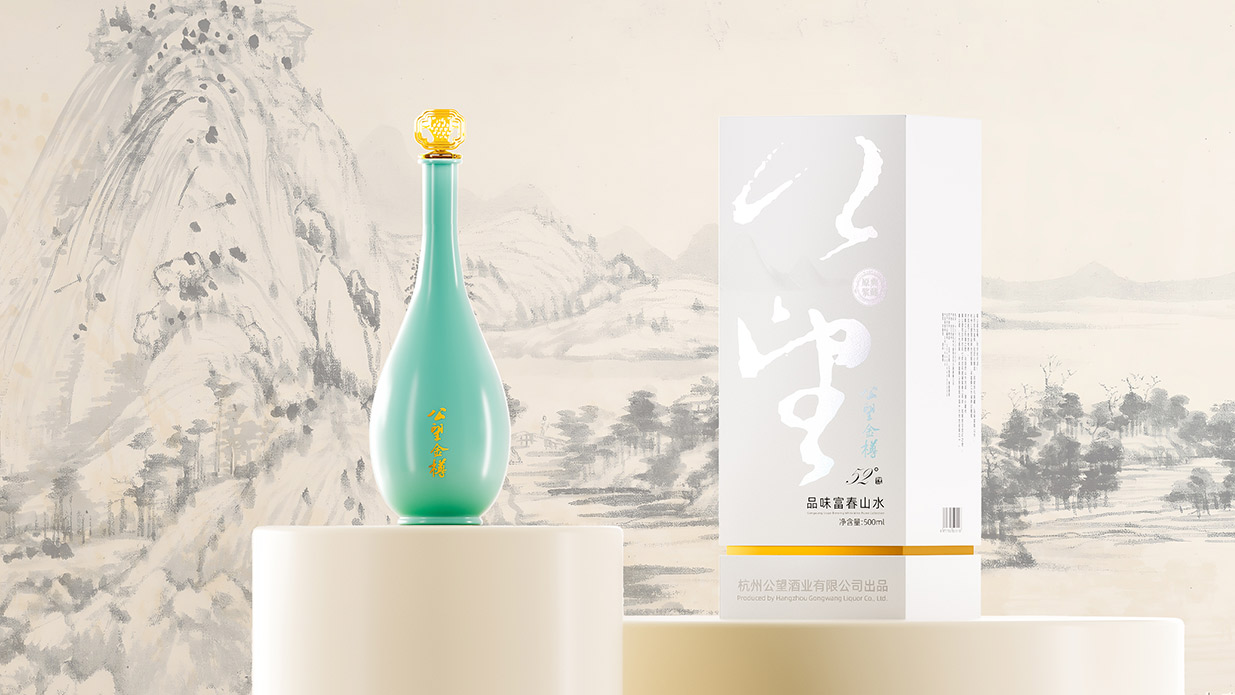 Introduction:公望白酒以其獨(dú)特的葡萄釀造工藝脫穎而出,其口感醇正且?guī)в衅咸烟赜械墓悖@種與眾不同的特質(zhì)為包裝設(shè)計(jì)提供了豐富的靈感來(lái)源。公望白酒的釀造基地位于風(fēng)景秀麗的富春江畔,這里是元代著名畫家黃公望的故里,深厚的文化底蘊(yùn)為產(chǎn)品注入了獨(dú)特的靈魂。因此,包裝設(shè)計(jì)的核心理念是借勢(shì)地域文化,將傳統(tǒng)文化與現(xiàn)代審美相結(jié)合,打造出具有獨(dú)特人文氣質(zhì)的產(chǎn)品形象。