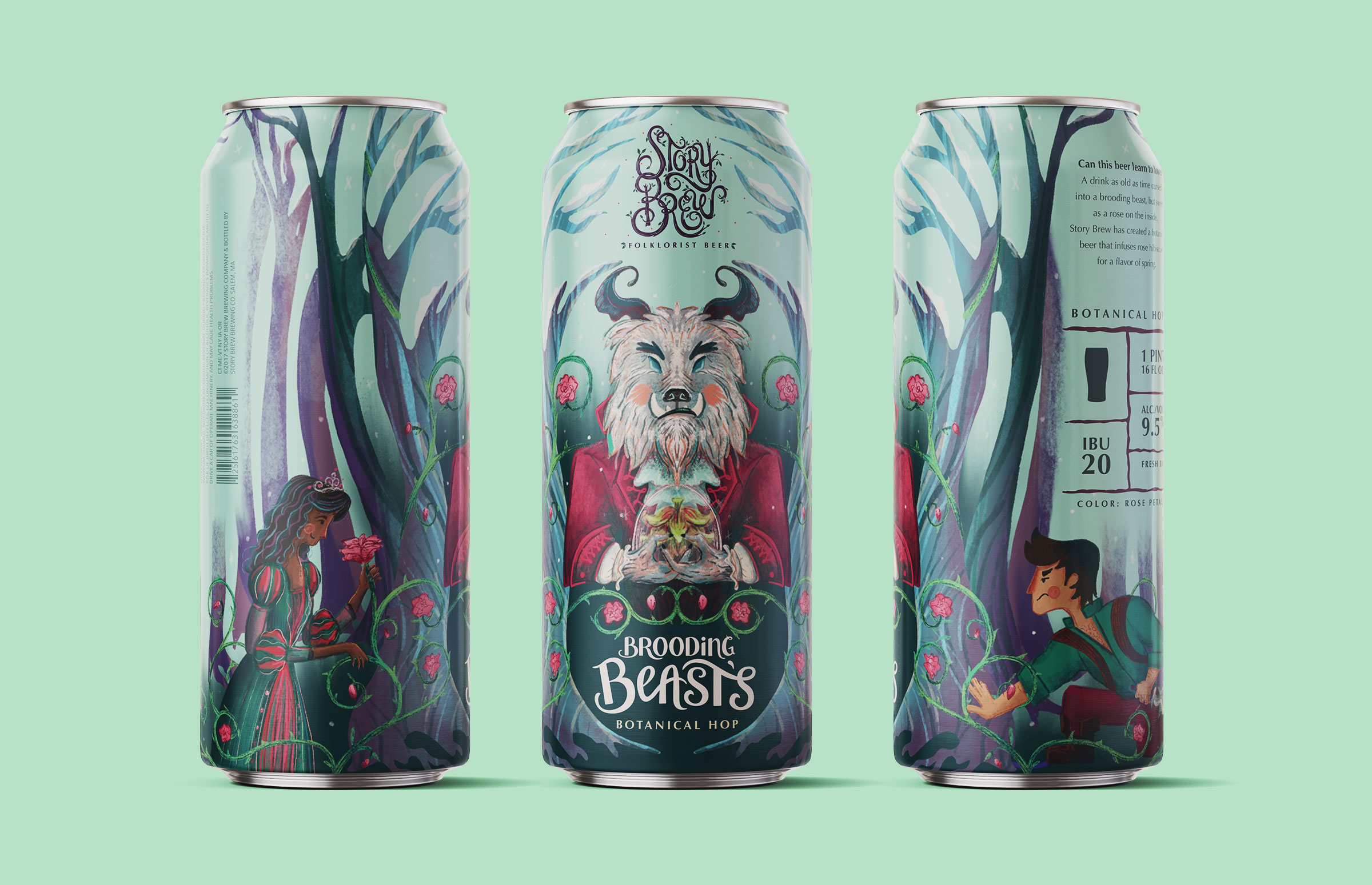 穿過叢林,踏上冒險(xiǎn)的旅程,Story Brew啤酒以傳統(tǒng)經(jīng)典童年故事做為創(chuàng)意基礎(chǔ)。表現(xiàn)出Story Brew啤酒一定會(huì)帶你踏上一段冒險(xiǎn)的狂野旅程,其設(shè)計(jì)基于美女與野獸、漢瑟與格雷特以及紅帽。啤酒以這些生動(dòng)的故事來表現(xiàn)出一些東西吸引我們。