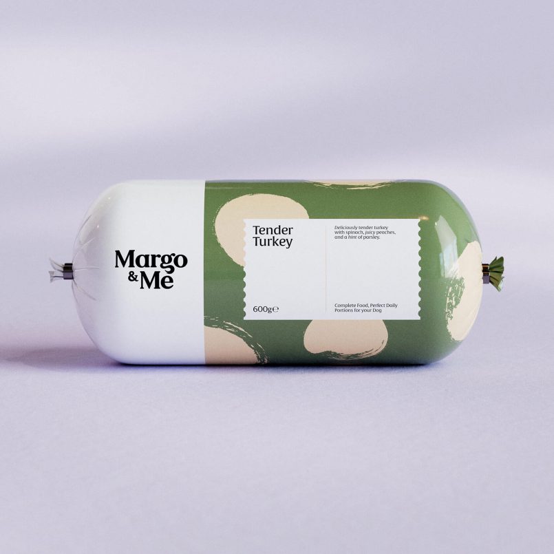 品牌的亮點(diǎn)之一是其巧妙的標(biāo)志設(shè)計(jì)。細(xì)看之下,你會(huì)發(fā)現(xiàn)一個(gè)歡快搖擺的尾巴巧妙地隱藏在“Margo&Me”的“g”字母中,這是一個(gè)充滿樂趣的小細(xì)節(jié),恰如品牌本身所傳達(dá)的歡樂氛圍。配合精心設(shè)計(jì)的包裝,整個(gè)品牌形象在寵物食品這個(gè)常常顯得千篇一律的行業(yè)中,給人以耳目一新、自信且截然不同的感受。