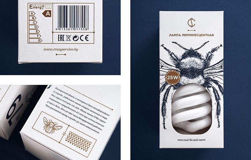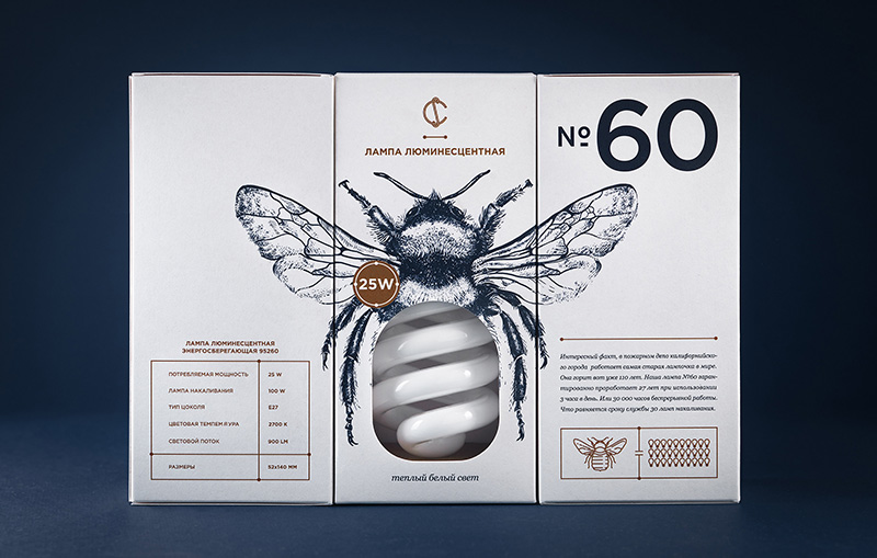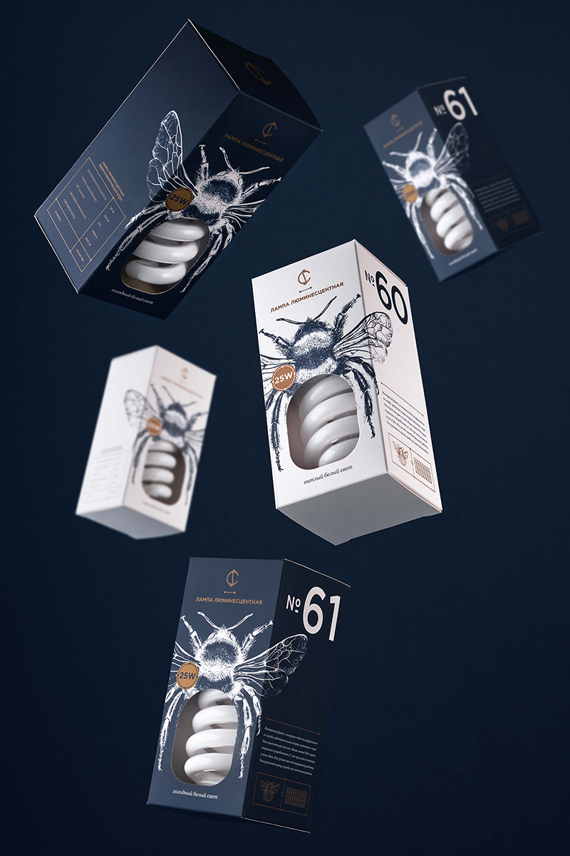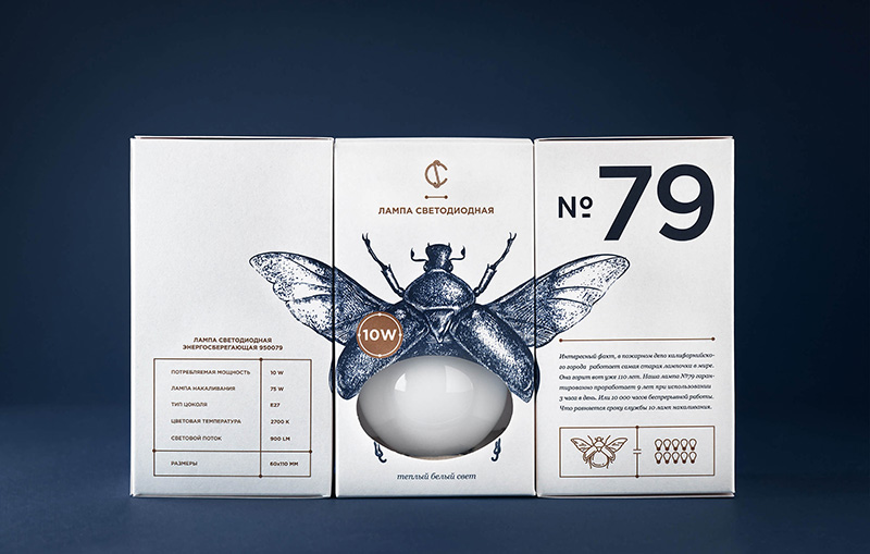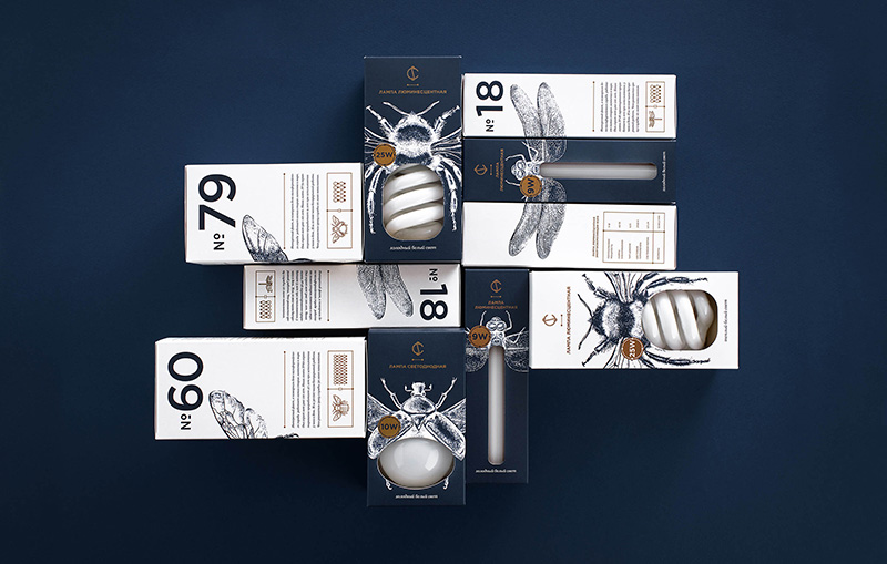 白俄羅斯最大的電器公司CS Electric設(shè)計(jì)的一款燈泡包裝。設(shè)計(jì)靈感來源于大發(fā)明家愛迪生,愛迪生生前一直認(rèn)為螢火蟲尾部發(fā)出的冷光,是最適合人類的光源。于是設(shè)計(jì)人員受這一點(diǎn)的啟發(fā),設(shè)計(jì)了插畫風(fēng)格獨(dú)特包裝的燈泡包裝盒。